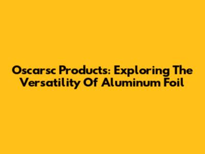 Oscarsc Products: Exploring The Versatility Of Aluminum Foil