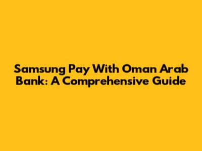 Samsung Pay With Oman Arab Bank: A Comprehensive Guide