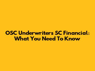OSC Underwriters SC Financial: What You Need To Know