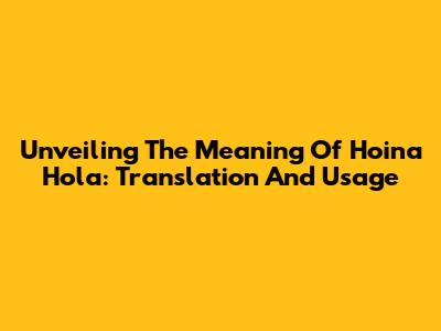 Unveiling The Meaning Of Hoina Hola: Translation And Usage