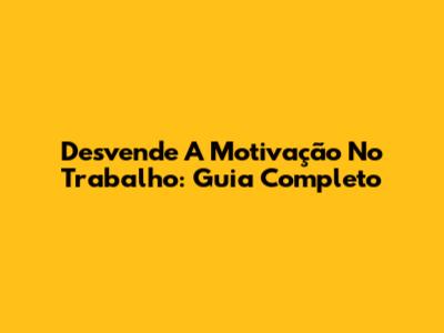 Desvende A Motivação No Trabalho: Guia Completo