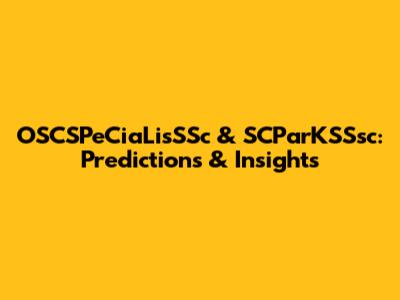 OSCSPeCiaLisSSc & SCParKSSsc: Predictions & Insights