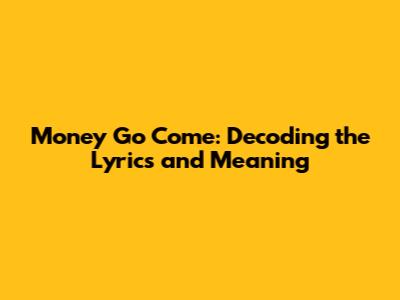 "Money Go Come" is more than just a catchy phrase; it's an anthem of hope, resilience, and unwavering belief in a brighter future. This article dives deep into the lyrics and meaning of "Money Go Come," exploring its cultural impact, the artist's intentions, and why it resonates with so many people. Whether you're a long-time fan or a newcomer, get ready to understand the song on a whole new level.