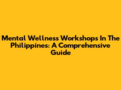 Mental Wellness Workshops In The Philippines: A Comprehensive Guide