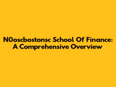 N0oscbostonsc School Of Finance: A Comprehensive Overview