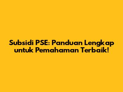 Memahami Lebih Dalam tentang Subsidi PSE