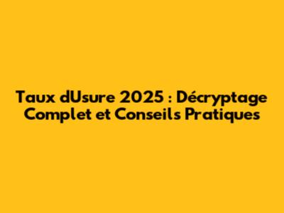 Taux D'Usure 2025 : Décryptage Complet Et Conseils Pratiques