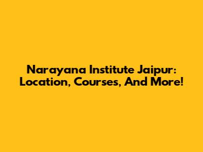 Narayana Institute Jaipur: Location, Courses, And More!