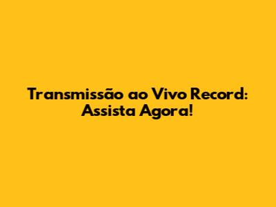 Transmissão Ao Vivo Record: Assista Agora!