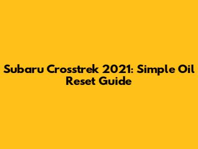 Subaru Crosstrek 2021: Simple Oil Reset Guide