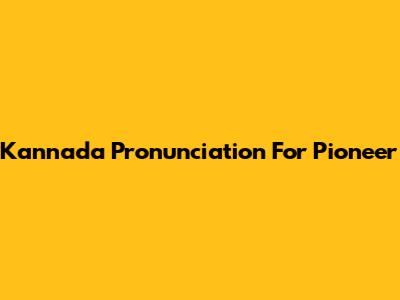 Kannada Pronunciation For "Pioneer"