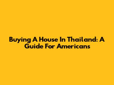 Buying A House In Thailand: A Guide For Americans