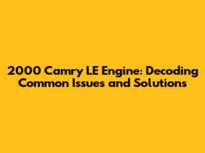 2000 Camry LE Engine: Common Issues And Solutions