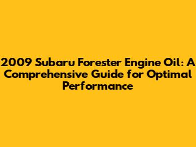 2009 Subaru Forester Engine Oil: Your Complete Guide