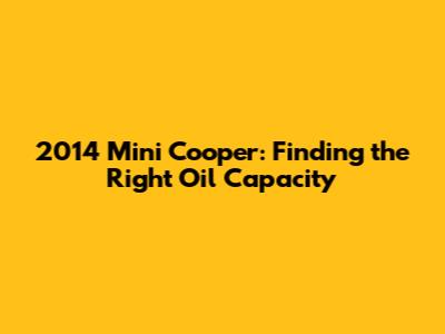 For the base 2014 Mini Cooper with the 1.5-liter three-cylinder engine, the oil capacity is typically around 4.2 quarts (4 liters). This engine is known for its fuel efficiency and peppy performance, making it a popular choice for city driving. When changing the oil, make sure to use a high-quality synthetic oil that meets the manufacturer's specifications.