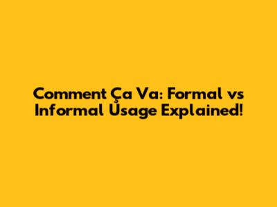 Comment Ça Va: Formal Vs Informal Usage Explained!