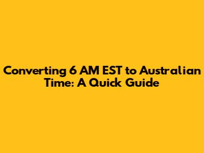 In this guide, we'll focus on how to quickly convert 6 AM EST to the corresponding time in various Australian time zones. We will cover the main time zones to get you sorted, so youâll be an expert in no time. This way you'll be prepared for anything, from casual chats to crucial business meetings. So let's get cracking, and make those time zone conversions a breeze!