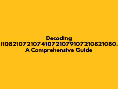 Decoding I10821072107410721079107210821080: A Comprehensive Guide