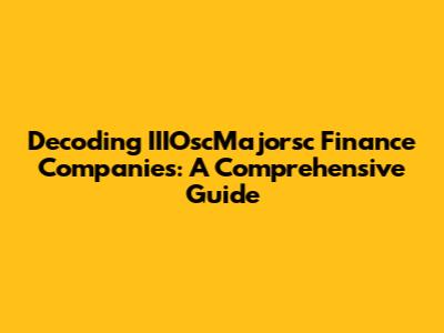 Decoding IIIOscMajorsc Finance Companies: A Comprehensive Guide