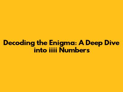 Decoding The Enigma: A Deep Dive Into Iiii Numbers