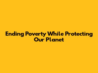 Ending Poverty While Protecting Our Planet