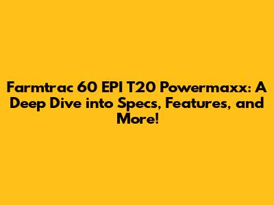 Hey there, farming enthusiasts! Let's dive deep into the world of the Farmtrac 60 EPI T20 Powermaxx. This tractor is a powerhouse, and we're going to break down everything you need to know about it. From its impressive specs to its user-friendly features, we'll cover it all, making sure you're well-informed. Get ready for a detailed look at a tractor designed to boost your productivity. Let's get started, shall we?