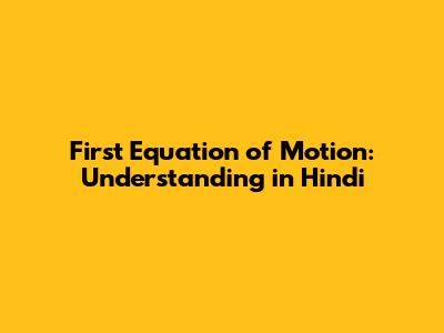 First Equation Of Motion: Understanding In Hindi