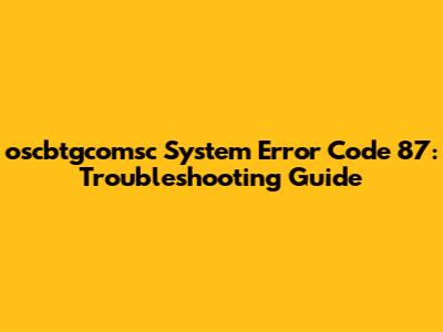 Understanding oscbtgcomsc System Error Code 87