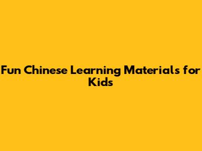 Fun Chinese Learning Materials For Kids