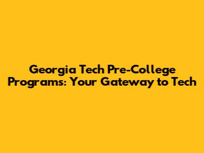 Georgia Tech Pre-College Programs: Your Gateway To Tech