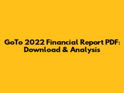 Hey guys! Are you looking for the GoTo 2022 financial report in PDF format? Well, you've come to the right place! In this article, we'll provide you with a link to download the report and break down the key highlights. We'll dive into GoTo's performance, analyze their financial statements, and explore what it all means for the future of this tech giant. So, buckle up and let's get started!