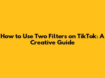 How To Use Two Filters On TikTok: A Creative Guide