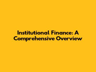 Institutional Finance: A Comprehensive Overview