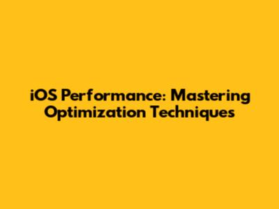 IOS Performance: Mastering Optimization Techniques