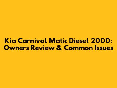 Kia Carnival Matic Diesel 2000: Owner's Review & Common Issues