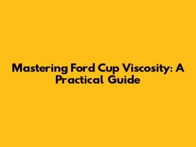 Mastering Ford Cup Viscosity: A Practical Guide