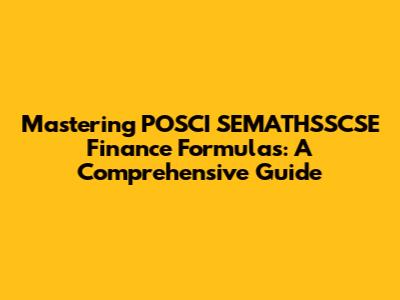 Mastering POSCI SEMATHSSCSE Finance Formulas: A Comprehensive Guide