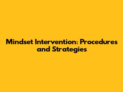 Mindset Intervention: Procedures And Strategies