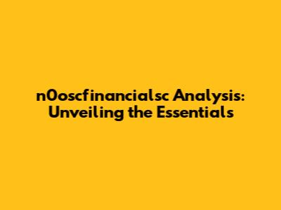 N0oscfinancialsc Analysis: What You Need To Know