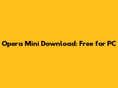 Opera Mini Download: Free For PC