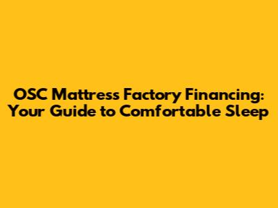OSC Mattress Factory Financing: Your Guide To Comfortable Sleep