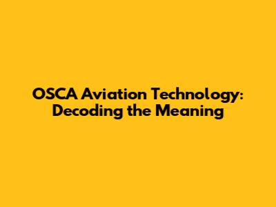 OSCA Aviation Tech: Decoding The Meaning