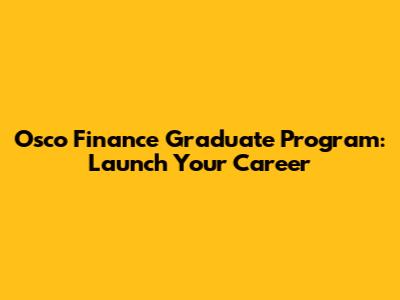 Osco Finance Graduate Program: Launch Your Career
