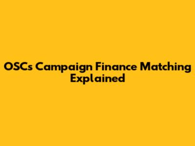 How Does OSC's Campaign Finance Matching Actually Work?