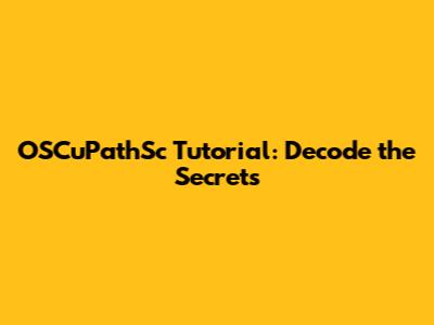 OSCuPathSc Tutorial: Decode The Secrets