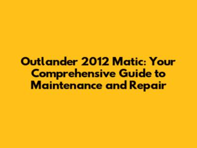 Outlander 2012 Matic: Guide To Maintenance And Repair