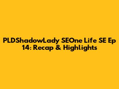 PLDShadowLady SEOne Life SE Ep 14: Recap & Highlights