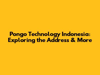 Pongo Technology Indonesia: Exploring The Address & More