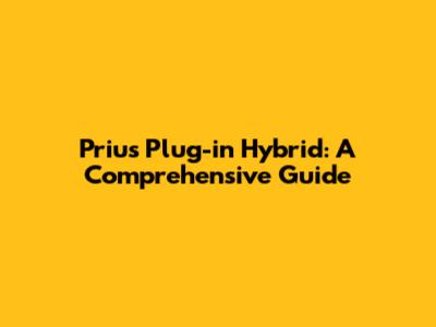 Prius Plug-in Hybrid: A Comprehensive Guide