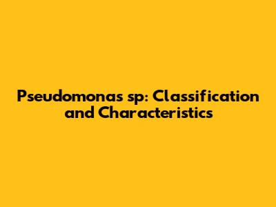 Pseudomonas Sp: Classification And Characteristics